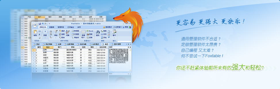Foxtable不僅是一個優(yōu)秀的應用軟件,同時又是一個高效率的開發(fā)工具,幾乎人人都能掌握。普通人也能開發(fā)出讓資深程序員目瞪口呆的軟件,不再是天方夜譚。